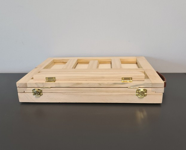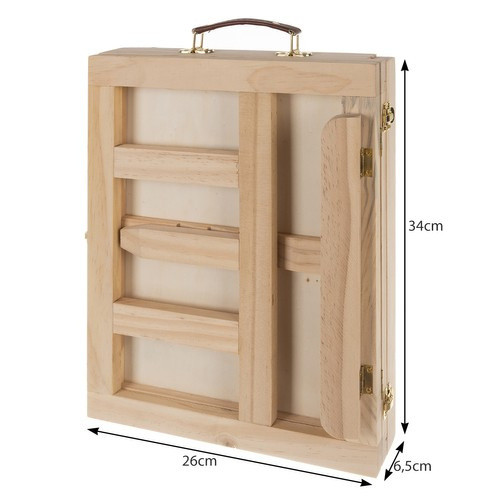 • 2 AZ 1-BEN HASZNÁLÓ ÉS GYAKORLATI BŐRDÖND - a festőállvány bőröndbe van összehajtva. A bőrönd strapabíró, kényelmes fogantyúval rendelkezik, melynek köszönhetően a szállítás egyszerű és kényelmes. Tartozékok tárolására szolgáló fiókkal rendelkezik , amely fémmel záródik, erős csatok garantálják, hogy a bőrönd szorosan záródik, és semmi sem esik ki vagy vész el.