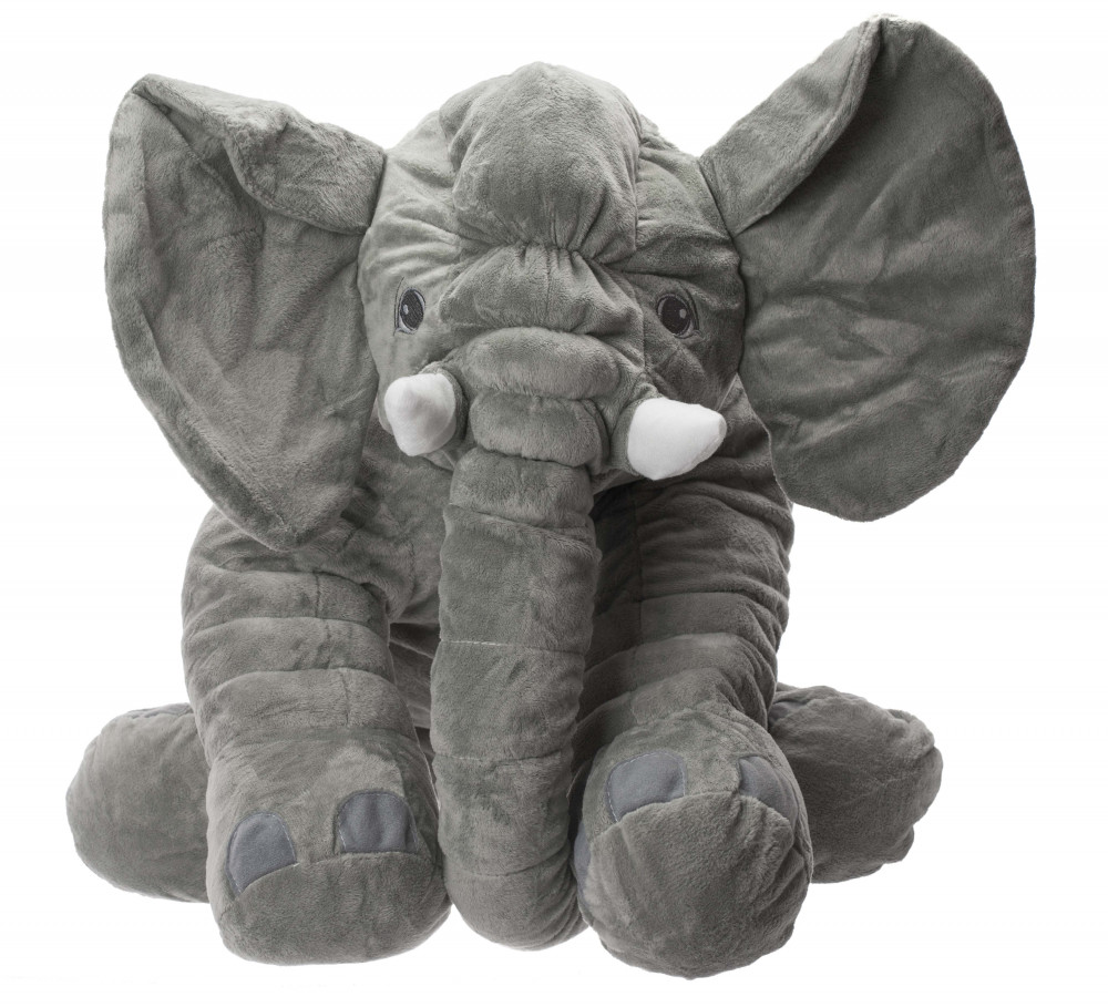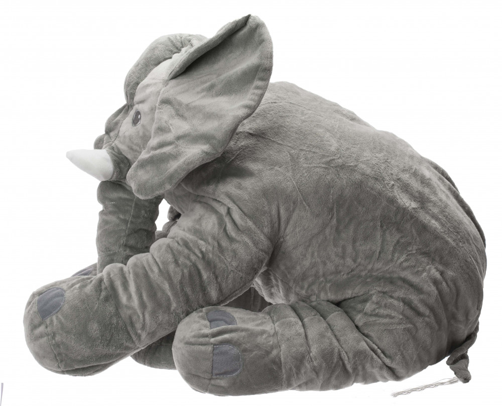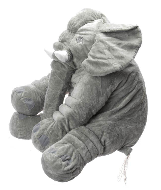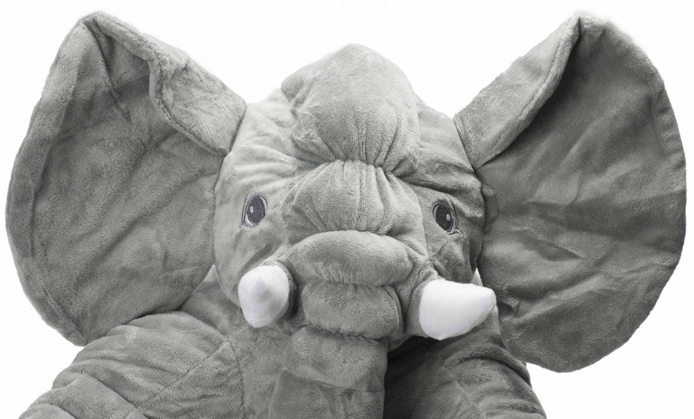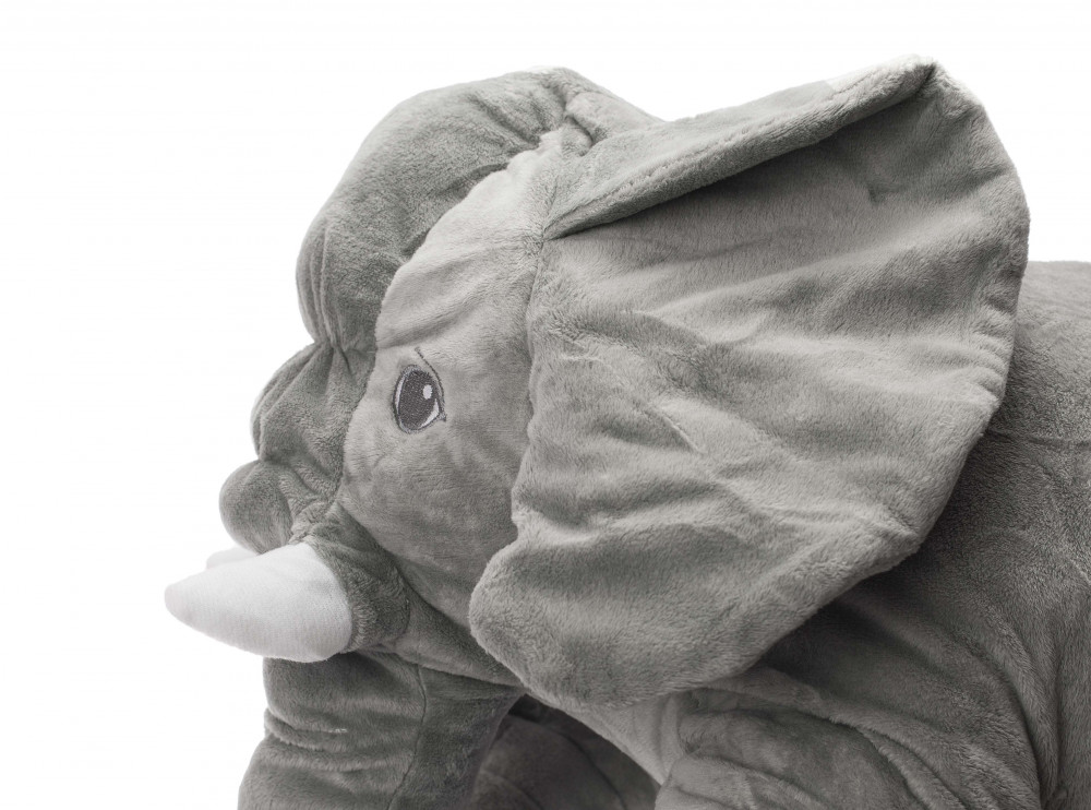 Nagy, puha plüss elefánt. Egyszerre tölti be a játék és a párna szerepét a csecsemők etetéséhez. Hossz: 60cm; magasság: 50cm.