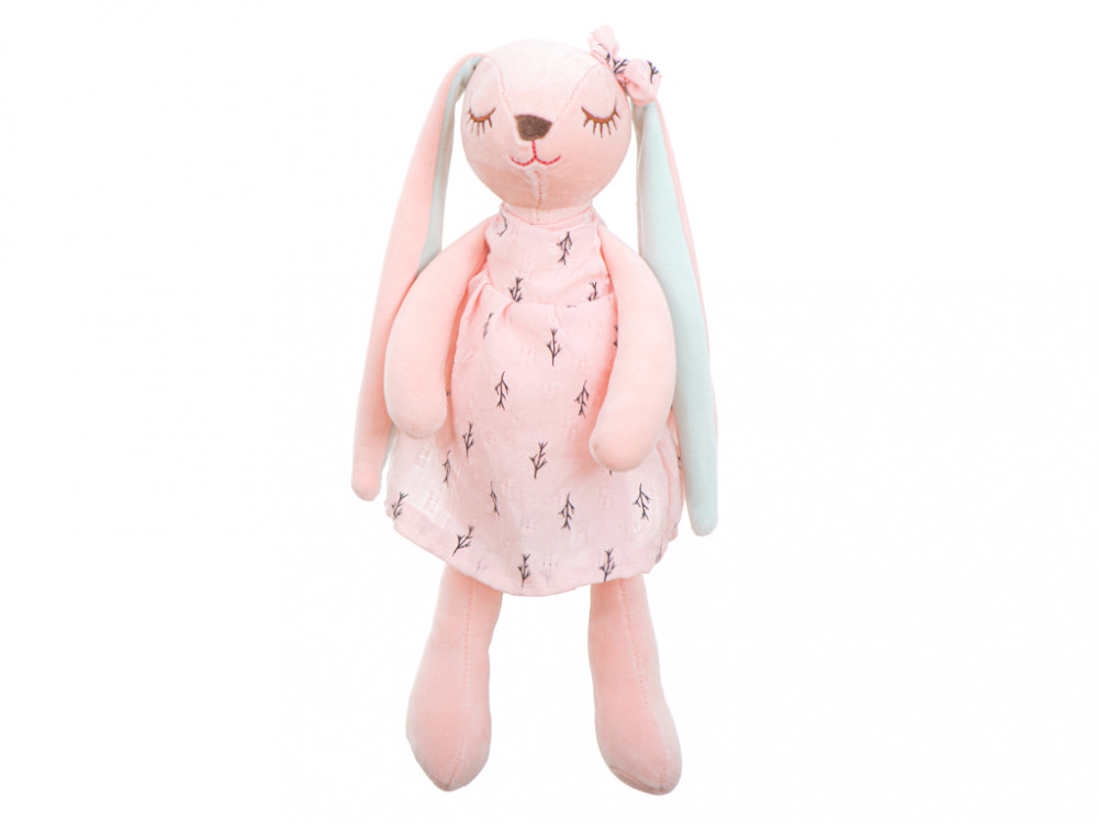 Egy nagyszerű plüss kabalafigura - egy nyúl. Minden kisgyermek szívét elrabolja. A nyuszinak levehető ruhája van, így a saját gyűjteményedből más ruhákra cserélheted. Szín: rózsaszín. A nyúl magassága: 35cm
