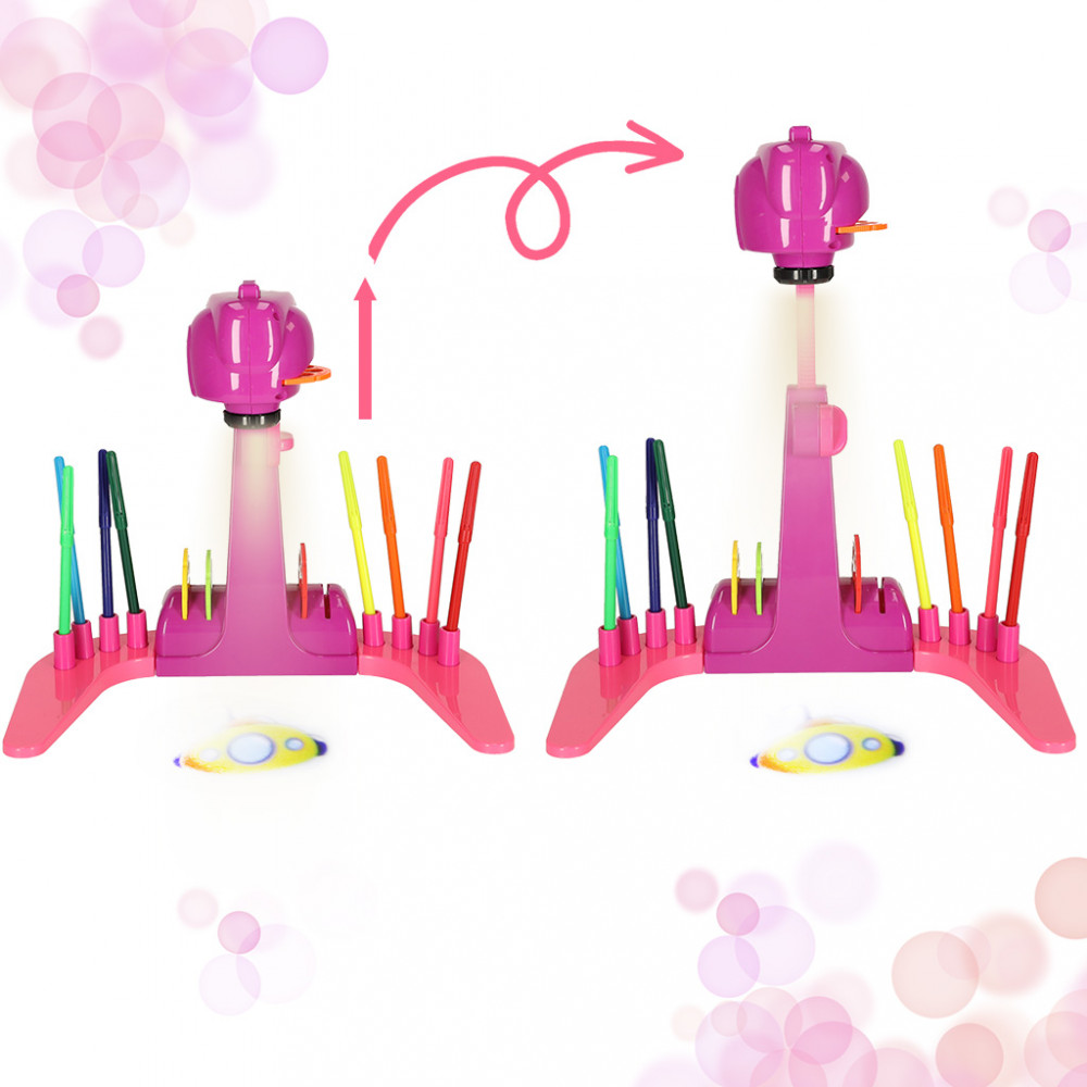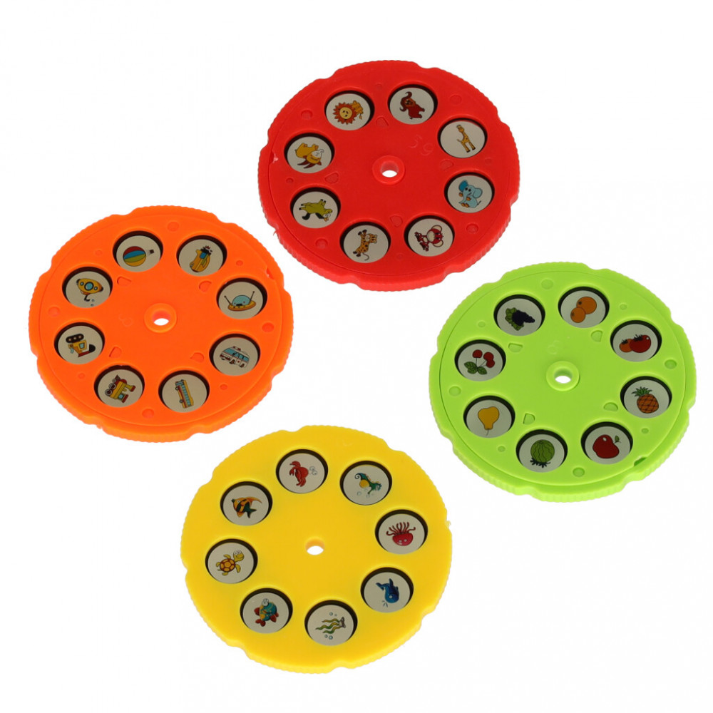 És hogyan működik egy ilyen játék? Mindössze annyit kell tenned, hogy behelyezel 3 AA elemet, kiválasztasz egyet a négy korong közül, és beteszed a kivetítőbe. Minden korongon 8 kép található, amelyeket a korong mozgatásával tudsz váltogatni. Ezután indítsd el, állítsd be a magasságot, és máris nekiláthatsz a rajzolásnak!