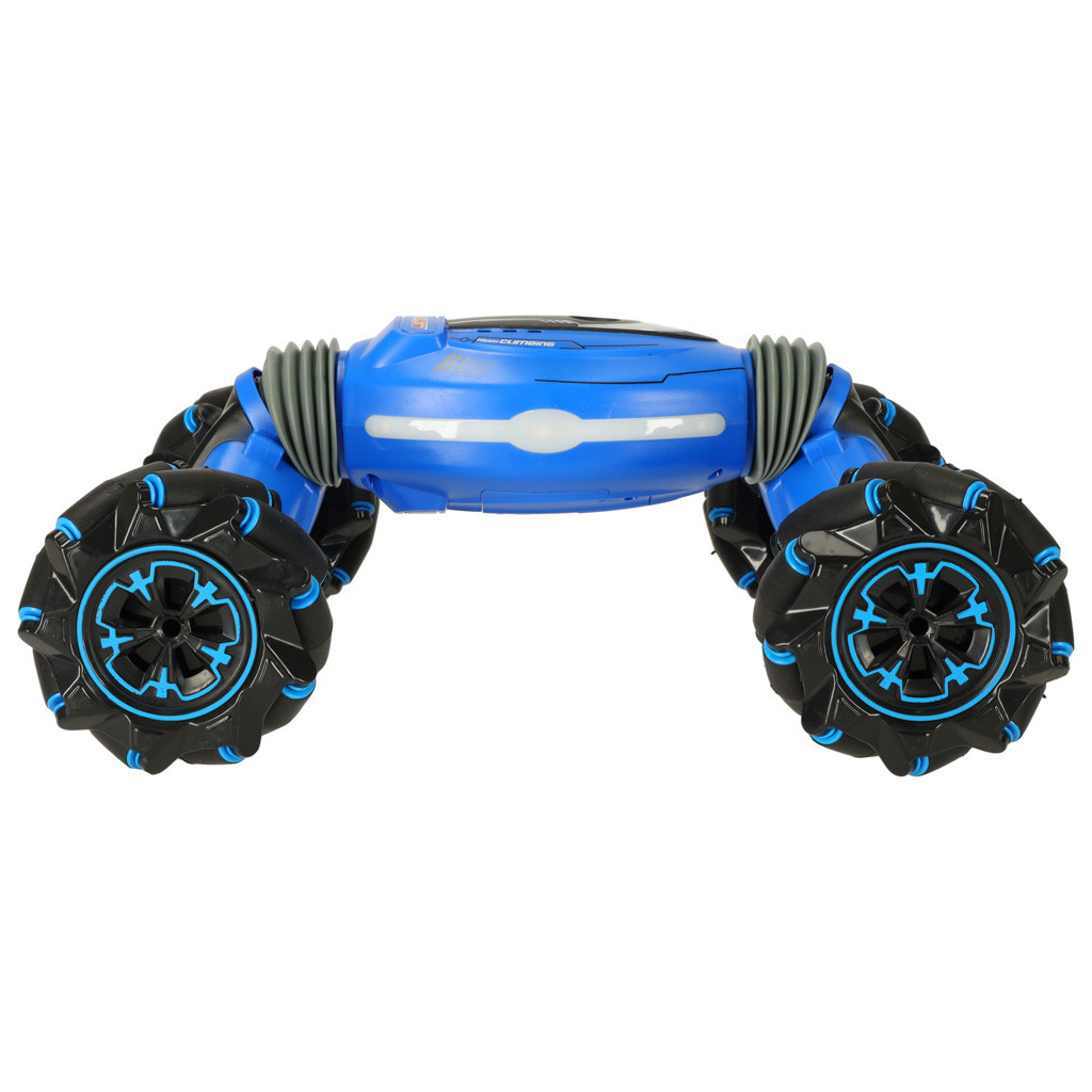 Fantastic RC Stunts Dancing távirányítós autó. Kaszkadőrmutatványokat hajt végre, alakot változtat, oldalra hajt, és nehéz felületeket küzd le. Fény- és hanghatásokat tartalmaz. Három vezérlési lehetőség. Vezetési idő: legfeljebb 20 perc. Méretek: 38x22x9cm.