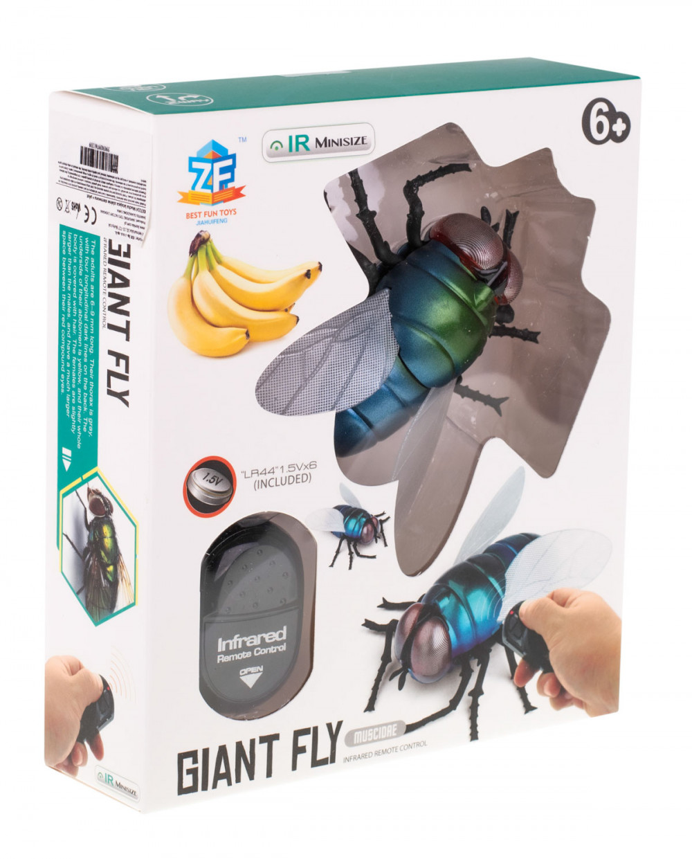 Fantasztikus műanyag légy, távirányítóval vezérelve. Biztosan tetszeni fog minden kis rovarbarátnak. A készlet a következőket tartalmazza: egy légy és egy távirányító, amely a készlethez tartozó elemekkel működik. A légy méretei: 12x7.5x3cm, távirányító 5.5x3.3x1.5cm.