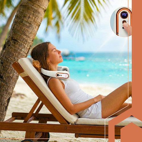 A könnyű, ergonomikus nyakpánt kényelmesen illeszkedik, hosszabb viselés közben sem nyom vagy zavar. A ventilátor fejei úgy vannak elhelyezve, hogy a levegőt közvetlenül az arc és a nyak környékére irányítsák, ezzel segítve a gyors felfrissülést. A stabil illeszkedés miatt ideális séta, kerti munka, tömegközlekedés vagy irodai használat közben is.