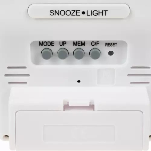 • LEÍRÁS - szín: fekete-fehér; anyaga: műanyag / fém; kijelző: LCD; hőmérséklet tartomány: 0 - 50 Celsius fok; páratartalom 20-90%; hőmérséklet kijelzés °C vagy °F skálán; két formátum közül választhat - 12 és 24 órás; szundi funkció: 8 perc; min és max hőmérséklet és páratartalom kijelző funkció: igen; tápellátás: elem: 1 x AA elem (nem tartozék); háttérvilágítás: igen; hangjelzés: igen; méretek: 9,5 x 9,5 x 4 cm; súly: 0,10 kg; súly a csomagban: 0,15 kg.