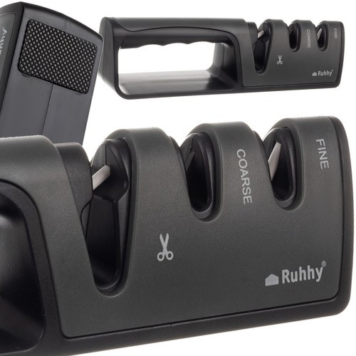 Ruhhy 22503 Kerámia Késélező - Háromfázisú Élező Rendszerrel, ABS + Kerámia + Fém, Fekete és Szürke