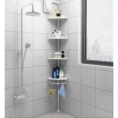 • 4 SZINT ÉS AKGASZTÓ - a fürdőszobai rendszerező 4 polccal és egy akasztóval rendelkezik, amely egymástól függetlenül különböző magasságokban állítható és szabadon forgatható a rögzítőrúd tengelye körül.