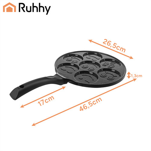 A Ruhhy 27273 tojás- és palacsintasütő serpenyő praktikus választás, ha rendezett, egyforma adagokat szeretnél készíteni reggelire vagy gyors vacsorára. Több, elkülönített mélyedésének köszönhetően a tészta vagy a tojás nem folyik össze, így minden darab szép, kerek formát kap.