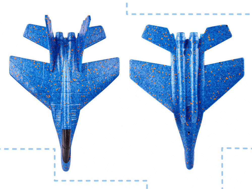 Könnyű, polisztirolszerű műanyagból készült sugárhajtómű. Az aerodinamikus forma javítja a levegőben való siklás képességét a hosszú és magas repülésekhez. 2 színben kapható: kék és szürke. Méretek: kb. 43x32cm.