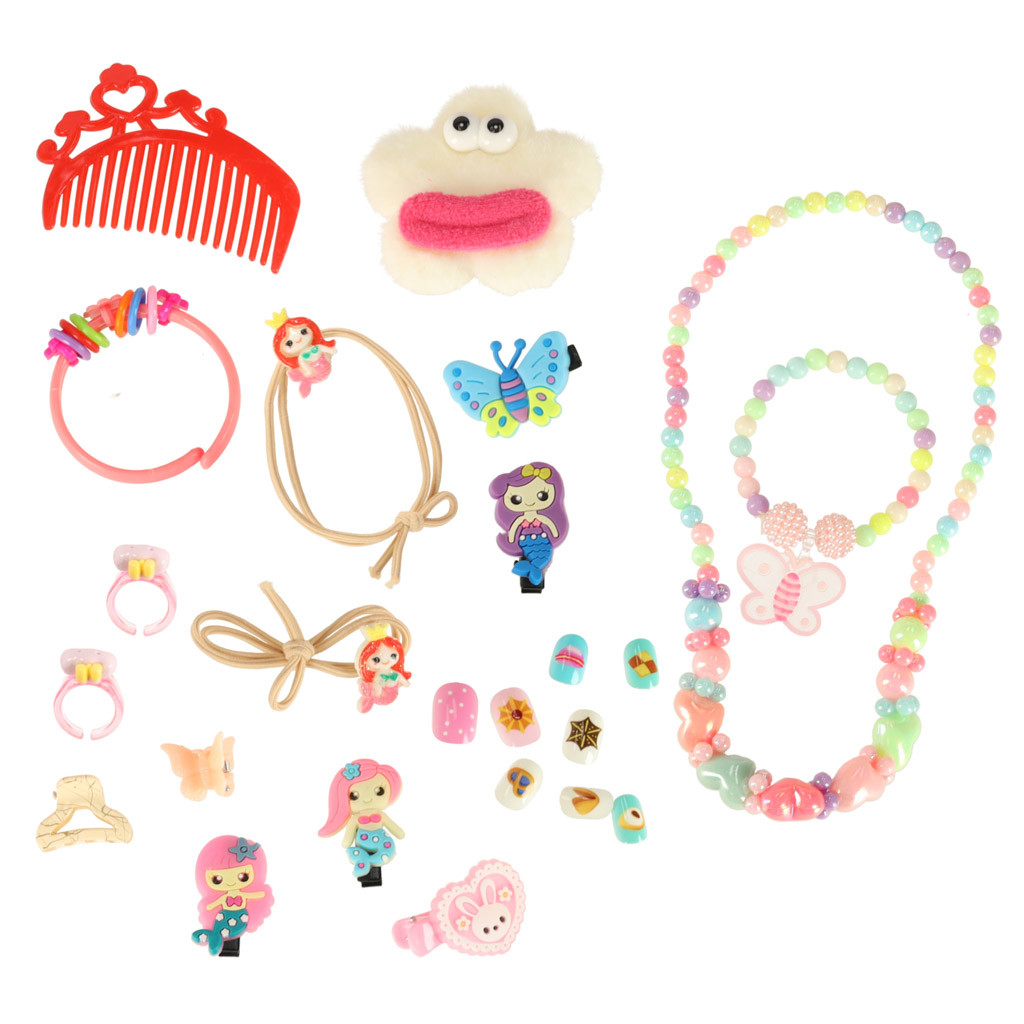 Kozmetikai szett 3+ kislánynak: egy láda tükörrel, smink- és stylingeszközökkel (árnyékok, lakkok, rúzsok, kiegészítők). A láda méretei: 26,2×19,4×5,5 cm. A kozmetikumok vízzel moshatóak, biztonságosak a gyermekek számára.