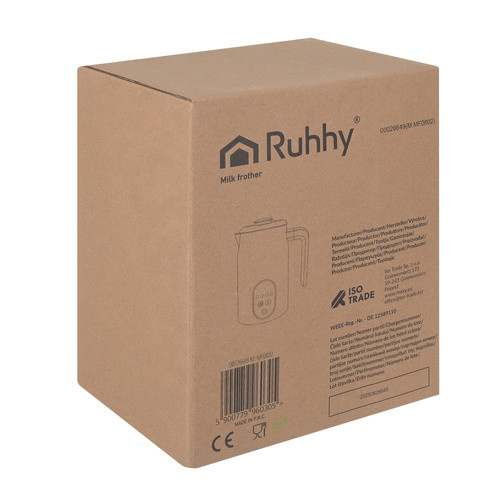 Ruhhy LED Kijelzős 500W Elektromos Tejhabosító - Fekete, 4 az 1-ben funkcionalitás, Állítható hőmérséklet szabályozás, Kettős keverőeszköz