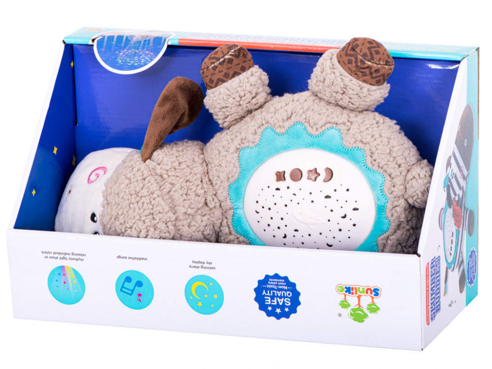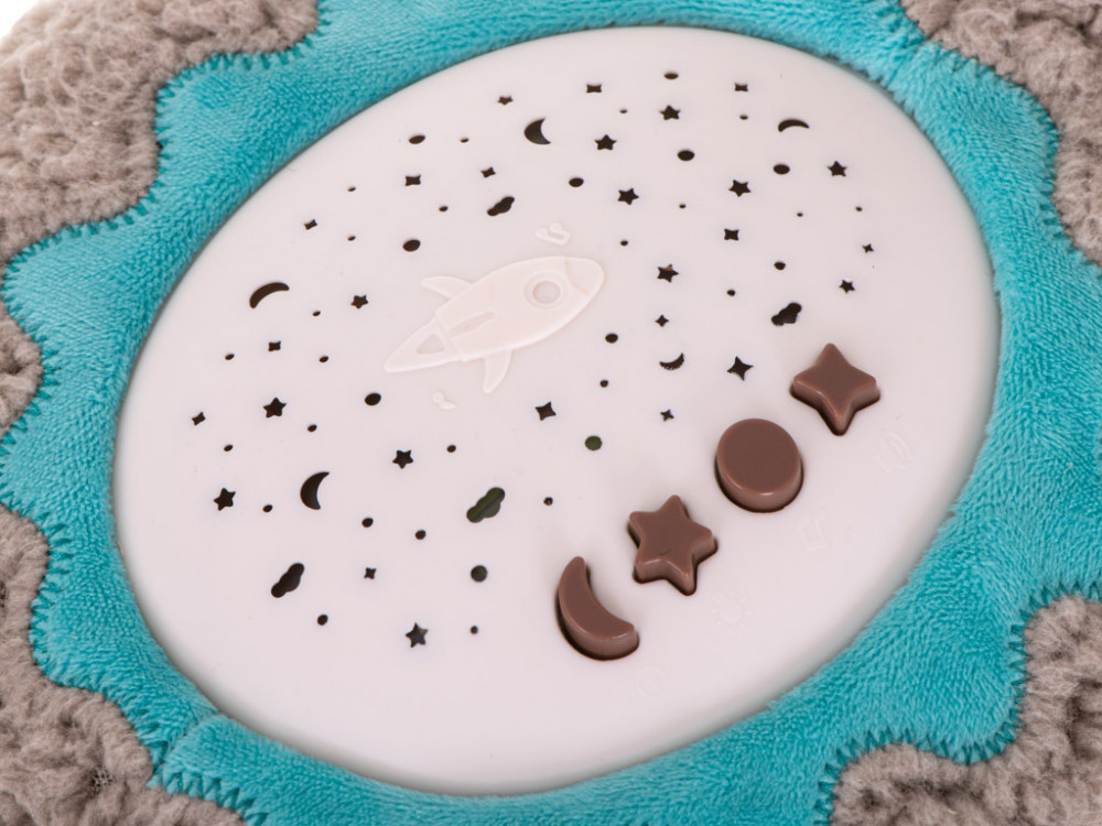 Ahhoz, hogy kellemes és meleg hangulatot teremtsen gyermeke szobájában, csak be kell kapcsolnia a csillagvetítőt, amely a termék egyik fő funkciója! Az elv nagyon egyszerű - ha a plüss hátán lévő fény aktiválódik, a plüss hátán lévő fény színes csillagokat hoz létre a falakon és a mennyezeten egy speciális redőnynek köszönhetően. Ez segít eloszlatni a kicsik számára rettegett sötétséget, ugyanakkor nem biztosít olyan világos, világos fényt, amely megzavarhatja a könnyű alvást.