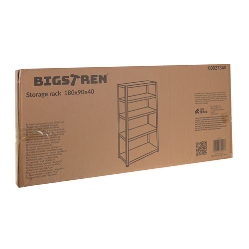 Masszív, fekete fém tárolópolc 180x90x40 cm méretben, Bigstren minőségben. Ideális garázsba, pincébe, műhelybe vagy raktárba, ahol fontos a stabil, jól terhelhető tárolás. A több szintes kialakítás segít rendszerezni szerszámokat, dobozokat, háztartási eszközöket. Letisztult, ipari stílusú megjelenése szinte bármilyen környezetbe illeszkedik.