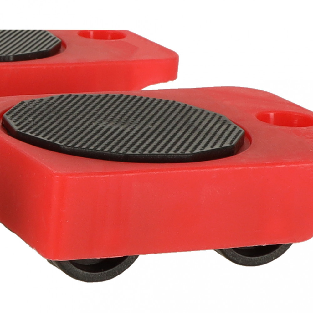 Bútorok és háztartási gépek mozgatására és szállítására szolgáló görgők. A készlet lehetővé teszi a nehéz készülékek kis erőfeszítéssel történő mozgatását. Maximális teherbírás: 150 kg. Emelési hossz: 33 cm.