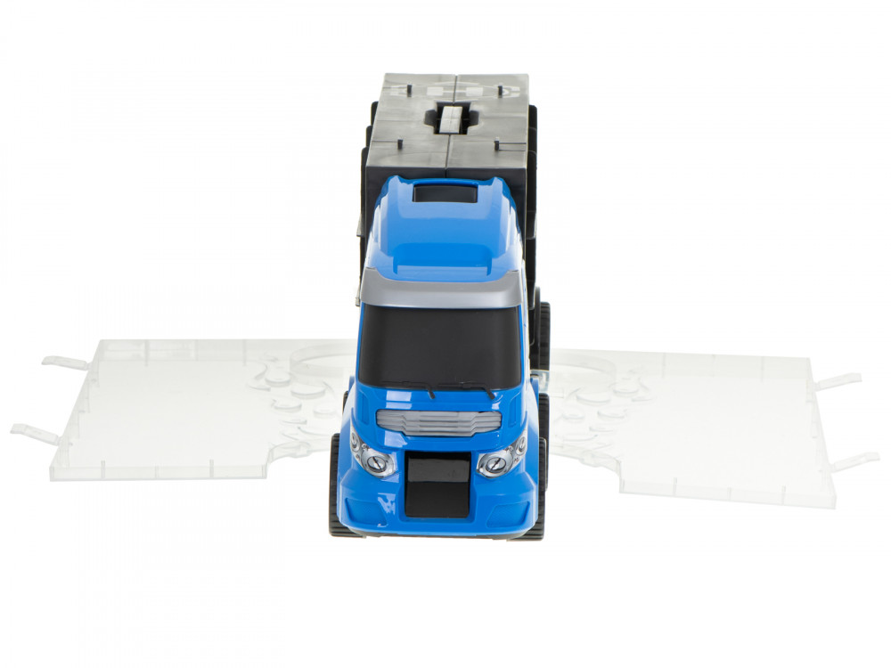 Egy nagy kék teherautóamely lehetővé teszi a hozzá kapcsolt kisautók biztonságos szállítását.