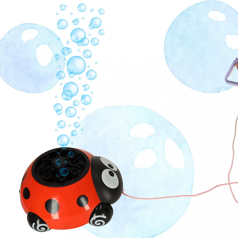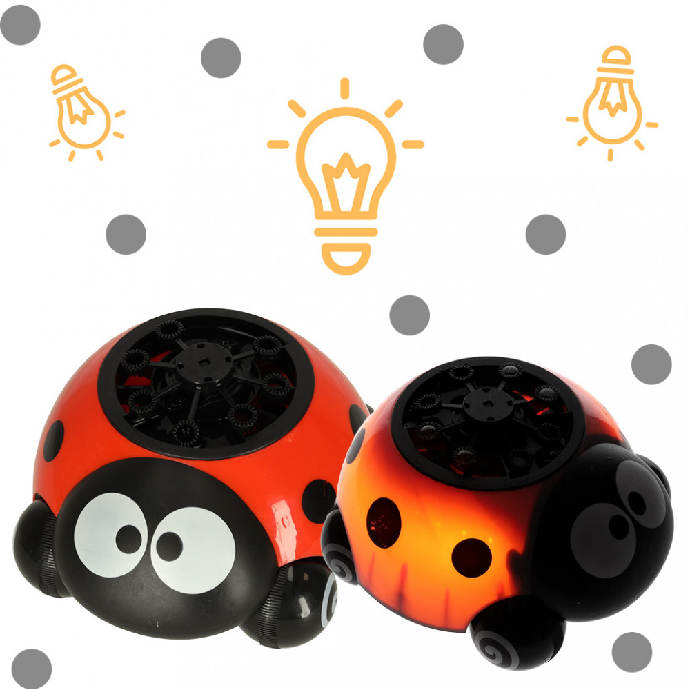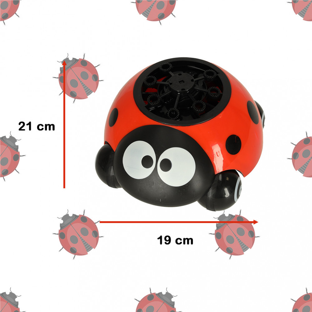 Imádnivaló szappanbuborék-gép katicabogár alakban. Működése karbantartásmentes - csak öntsön bele egy kis folyadékot, kapcsolja be a gépet, és a katicabogár maga is elkezd sok buborékot kibocsátani. Anyaga: műanyag. Energiaellátás: újratölthető akkumulátor. Méretek: 19x21x12 cm.