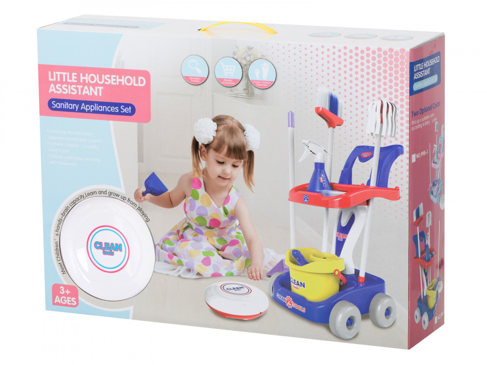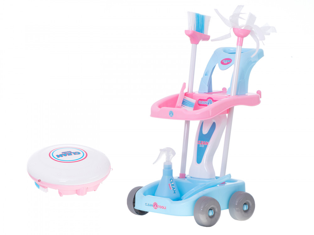 Fantasztikus, többrészes tisztítószett. A készlet a következőket tartalmazza: robotporszívó, vödör, felmosó, kefe, porszívó és folyadék. A játék serkenti a képzeletet, és arra ösztönzi gyermekét, hogy tisztán tartsa magát. Anyaga: műanyag. A kocsi méretei: 50x32x30cm.