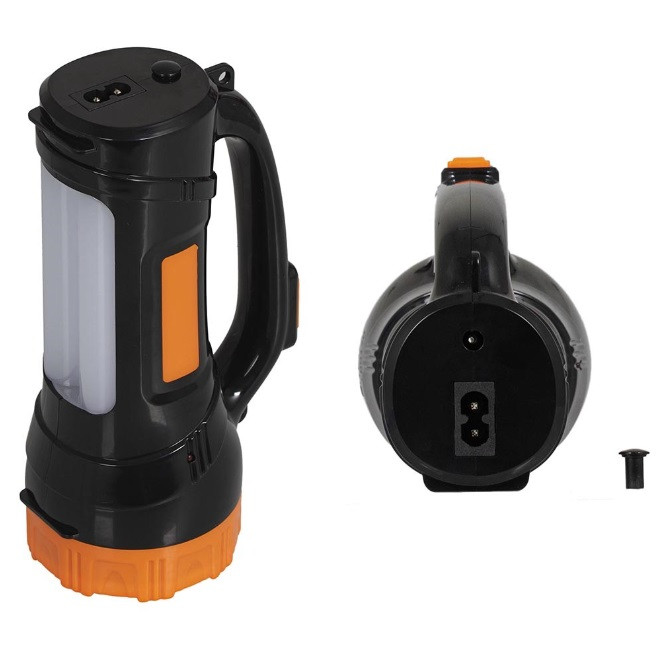 Kétfunkciós keresőfényszóró, amely nagy teljesítményű, akkumulátorcserét nem igénylő újratölthető tápegységgel van felszerelve. A beépített újratölthető akkumulátor közvetlenül 230 V-os konnektorról tölthető. A zseblámpa nemcsak keresőfényként, hanem álló kempinglámpaként vagy olvasólámpaként is használható.