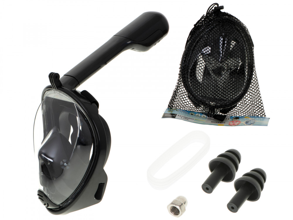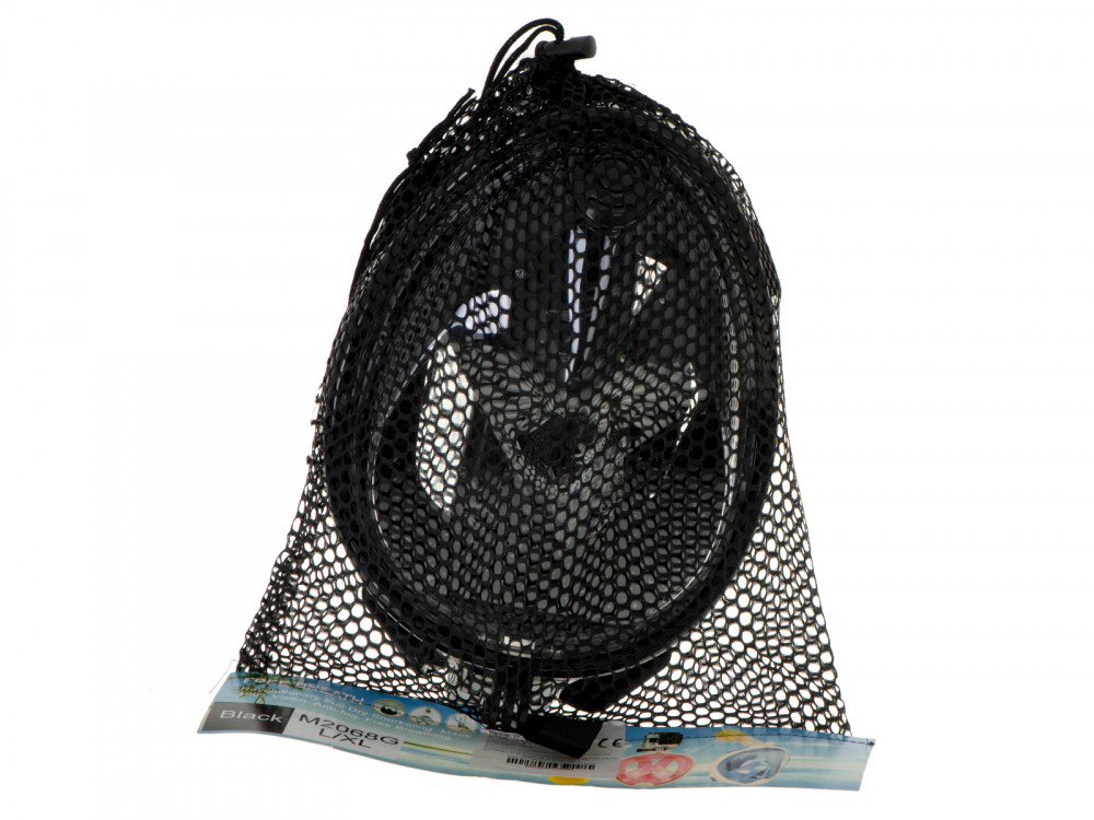 Felszíni maszk búvárkodáshoz. Sportolásra és szabadidős használatra egyaránt tervezték. Tartalmazza: maszk, száraztömlő, szállítóháló. Szín: fekete. Méret: L/XL. Maszk méretei (külső): 24x22cm.