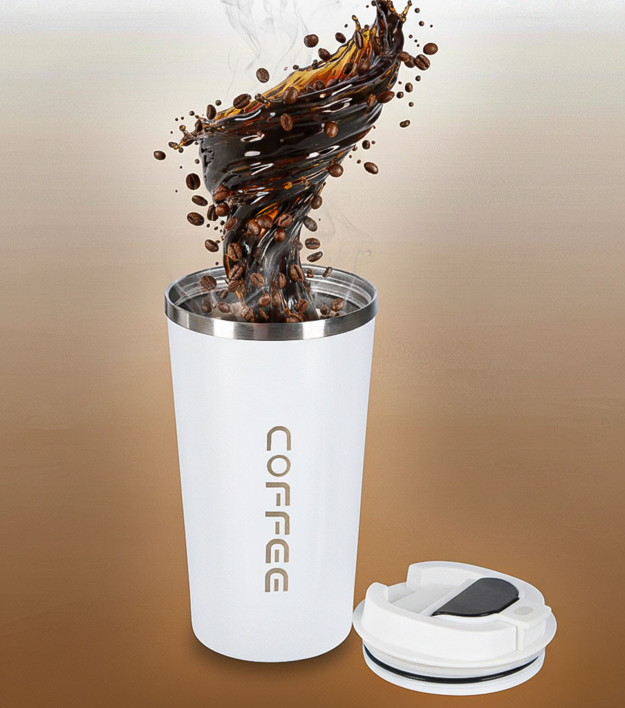 Termikus bögre szájkosárral LED termosz 500ml fehér