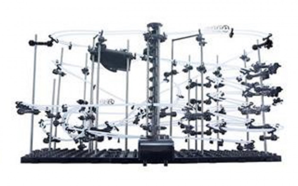 Az egész szerkezet fémből, műanyagból és horgászzsinórból készült. Az összes elemet összerakva végül egy hatalmas pályát kapunk, amelyen a fémgolyók közlekednek. Egymás után csúsznak át a hurkokon, amíg el nem érik a liftet, amely felviszi őket a szerkezet tetejére, ahol a móka kezdődik elölről. A Spacerail egy 3D-s puzzle, amely inspirálni fogja a kreativitásodat, mivel a szerkezetet tetszésed szerint építheted meg, nem feltétlenül követve az utasításban szereplő lépéseket.