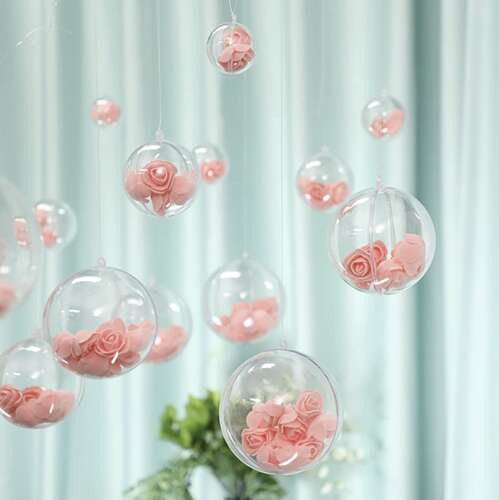 • FÉLGÖMB ALAK - gyönyörű dekorációkat helyezhet el benne, mint például tollak, csillámok, moha, műhó, szalagok vagy konfetti. Készíthet édes csecsebecsét is, csak néhány cukorka és kész is. A golyók belülről vagy kívülről is festhetők.