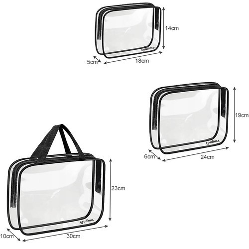 • LEÍRÁS - szín: átlátszó; rögzítés: cipzárral; anyaga: PVC; méretek: 18 x 14 x 5 cm, 24 x 19 x 6 cm, 30 x 23 x 10 cm; súlya: 228g; súlya a csomagolásban: 243 g.