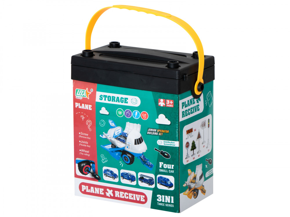 Áruszállító repülőgép áruszállításra. Ez megtanítja gyermekét a függetlenségre, a logikus gondolkodásra és a kreativitásra. A készlet a következőket tartalmazza: 4 autó, csavarhúzó, útjelző táblák. A repülőgép méretei: 20x24.5x13.5cm. Az autók méretei: kb. 7.5x2.5.5x2cm.