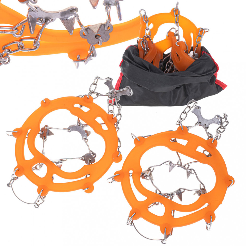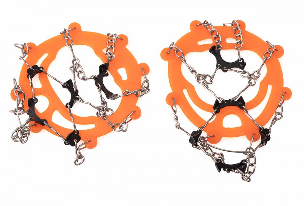 Havas vagy jeges hegyi terepen való mozgásra tervezték, nem károsítják a lábbelit, hordtáskába csomagolva.