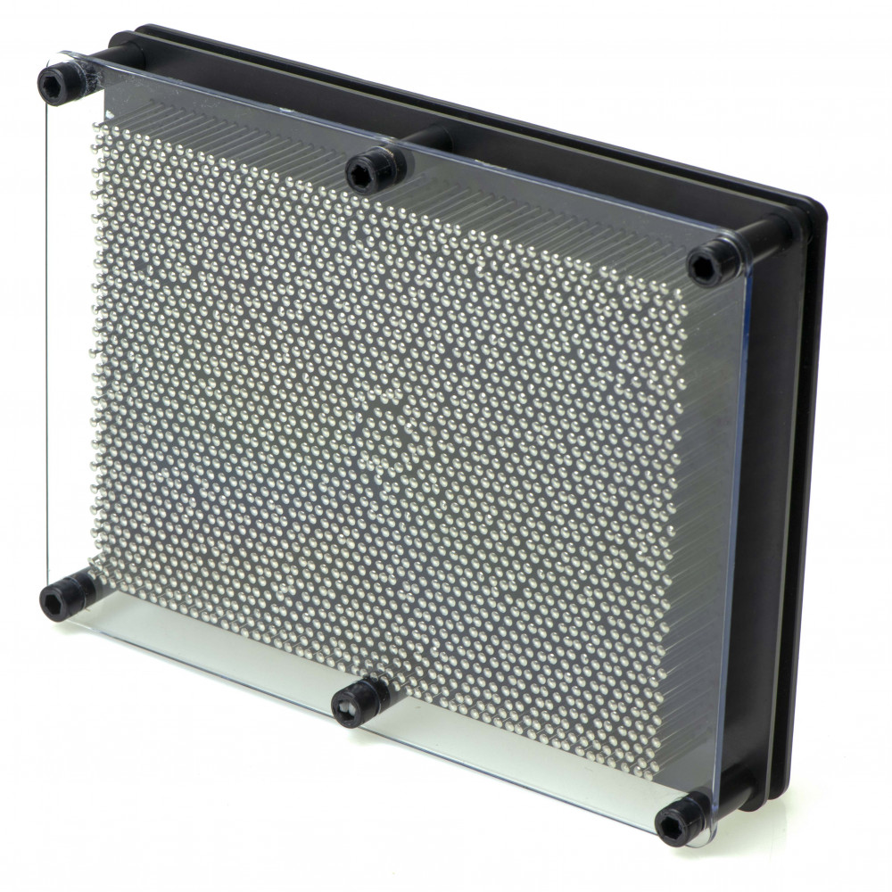 Egy szokatlan, biztosítótűkből készült tábla. Lehetővé teszi, hogy három dimenzióban megörökítse a különböző dolgok tükröződéseit. Ha meguntad a mintát, csak rázd meg a táblát és készíts egy másikat.Méretek:15x21cm Szín: fekete-szürke