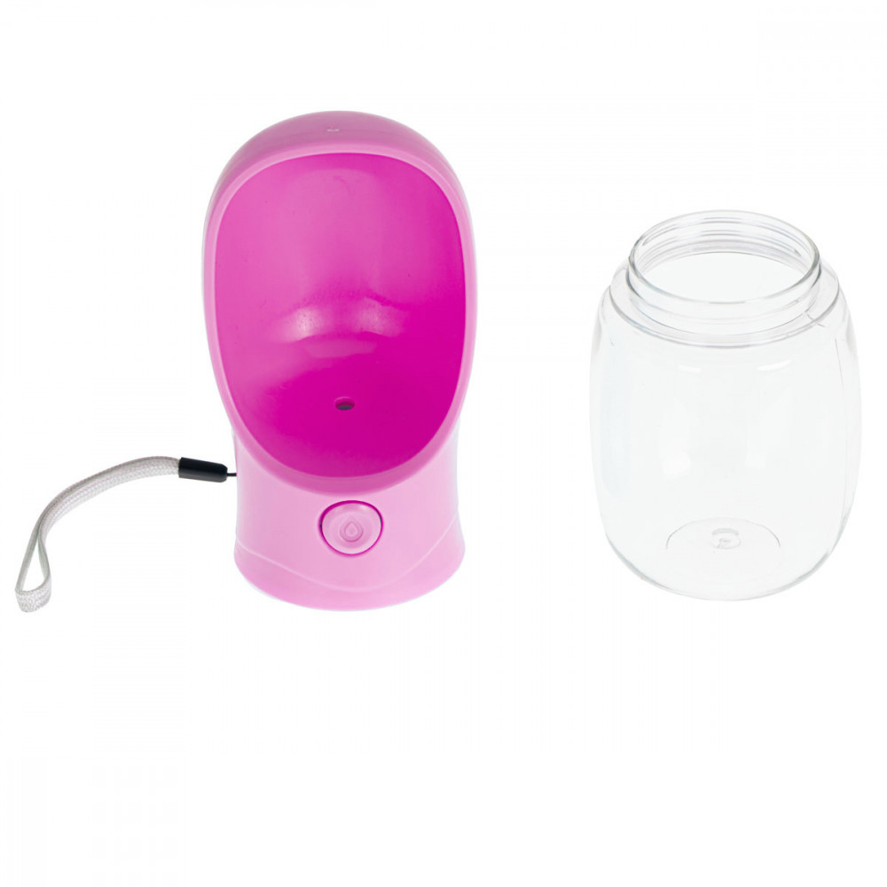 Praktikus vizes palack a kutyának. Ideális utazáshoz és sétához. Húzózsinórral rendelkezik, hogy a palack elérhető távolságban maradjon. Könnyen használható. Rózsaszínben kapható. Kapacitás: 350ml. Méretek: 31x5.5cm.