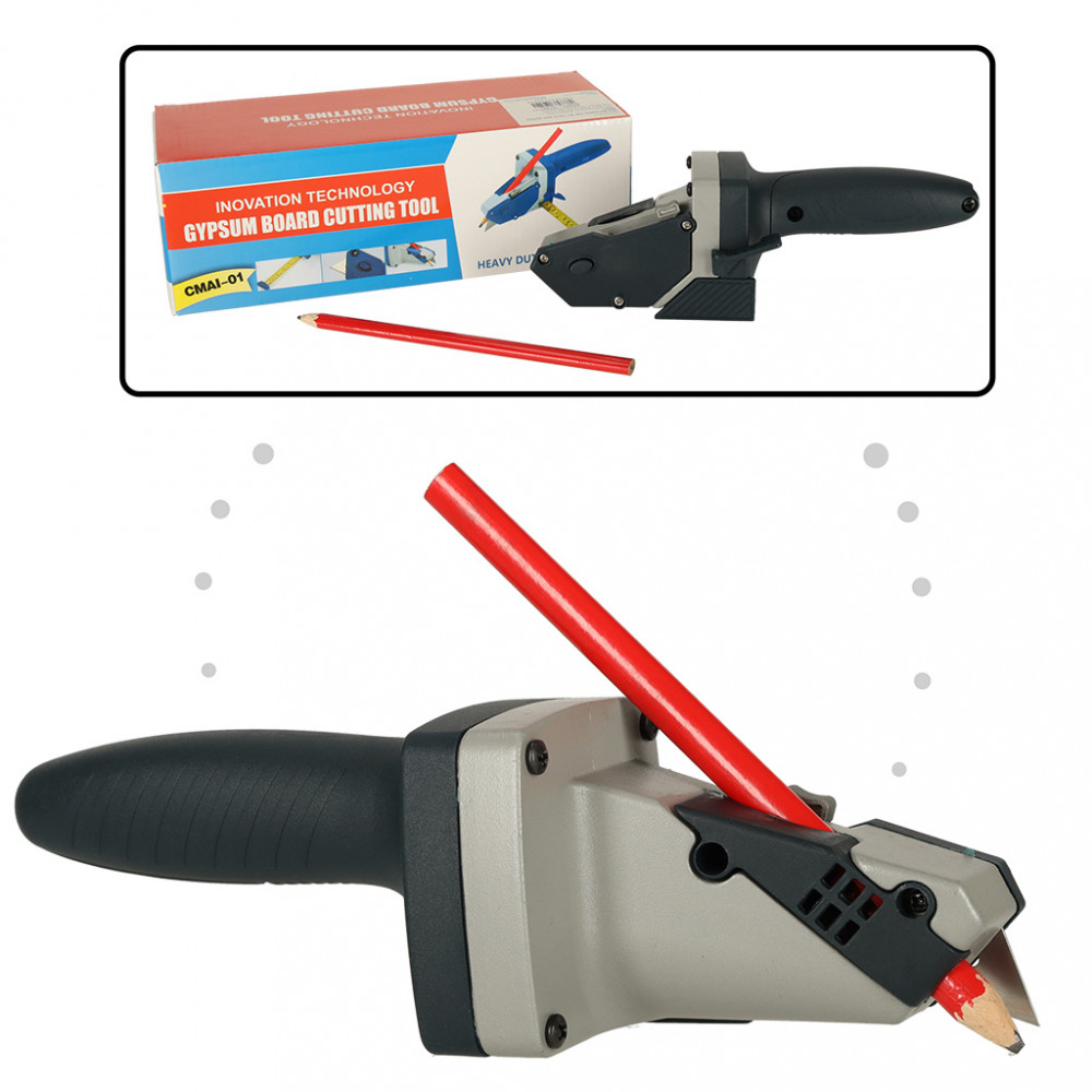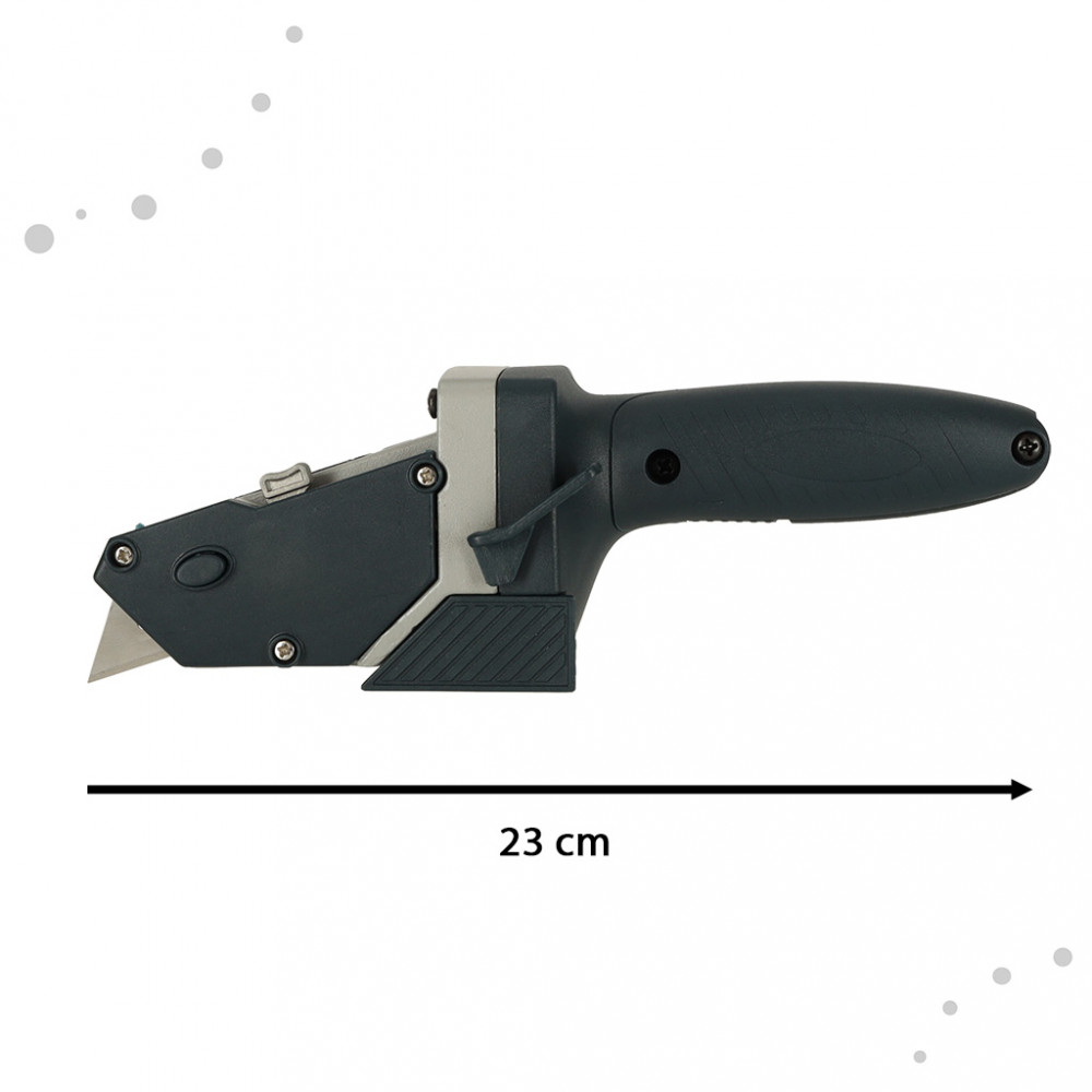 Gipszkarton precíziós vágására szolgáló szerszám. Beépített 5 méteres mérőszalaggal, ceruzafoglalattal és kihúzható pengével rendelkezik. A fogantyúban rejtett rekesz található további cserepengék számára. Méretek: 23 x 8,5 x 7 cm.