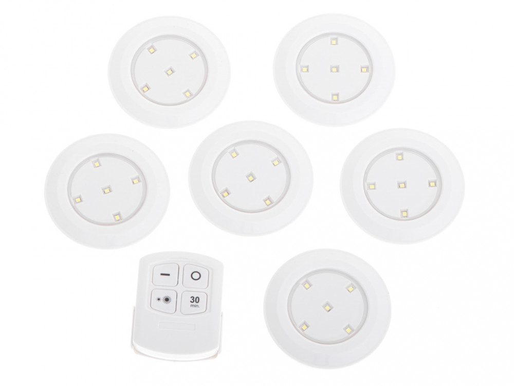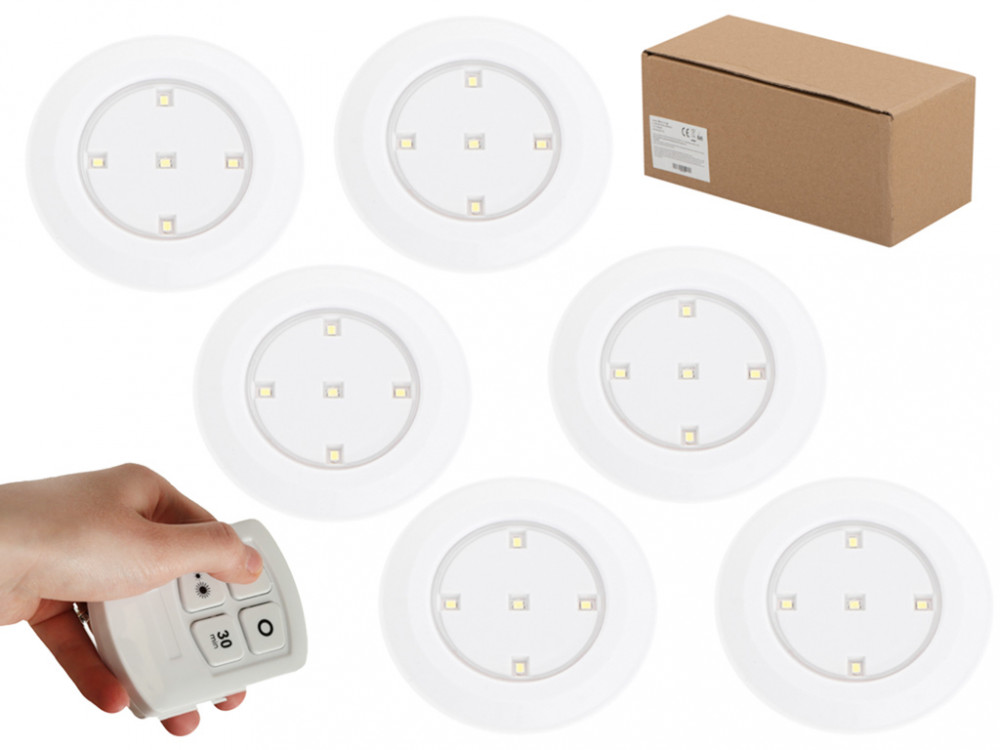 VEZETÉK NÉLKÜLI LED LÁMPA ELEMEKKEL 6 DB + TÁVIRÁNYÍTÓVAL