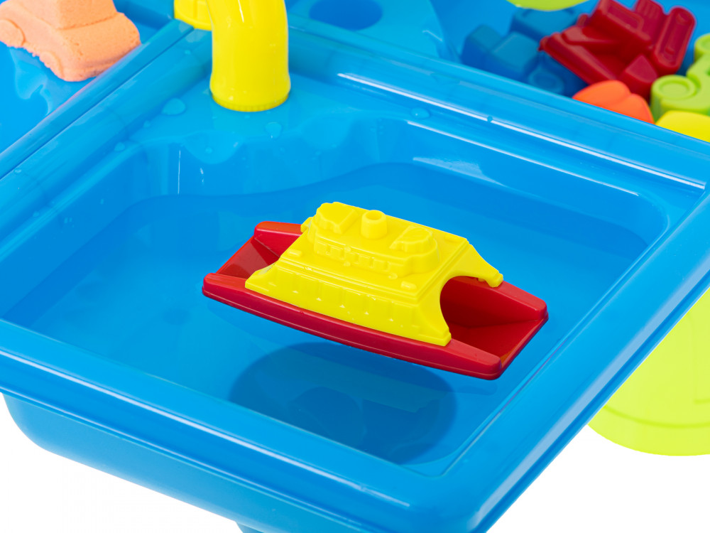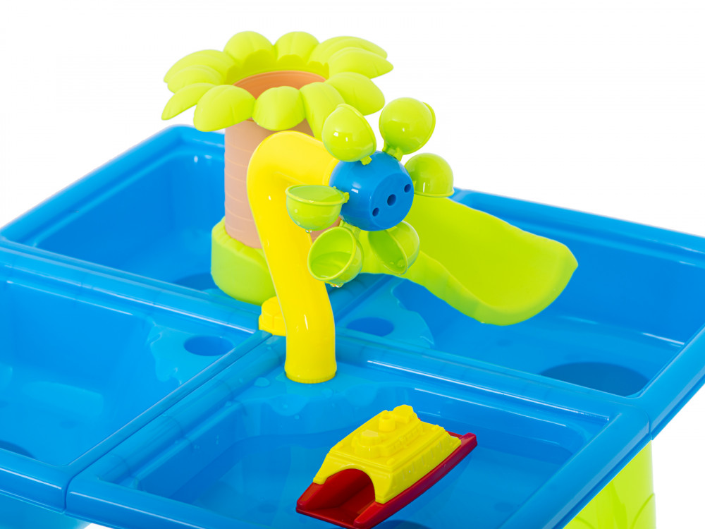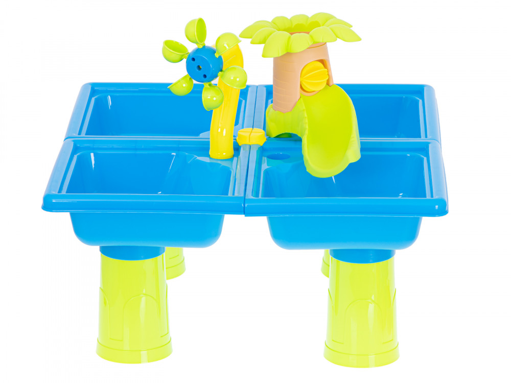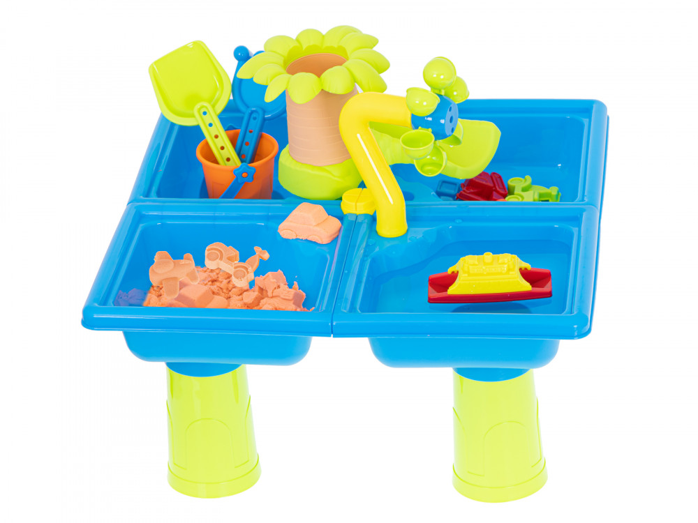 Egy olyan készletet, amelyben a homokozó és a víztartályok egy formában, egy asztal formájában egyesülnek, gyermeke imádni fogja.