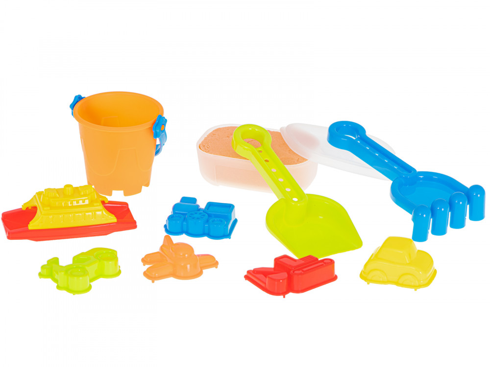 Ez a fajta játék kísérletezésre, a kreativitás és a térbeli képzelet fejlesztésére invitál. A homoktartozékok konyhai, bolti vagy cukrászipari berendezésekként is használhatók. A velük való játék során különböző szerepeket kell játszani, ami viszont beindítja a gyerekek találékonyságát. Ezenkívül pozitív hatással van a szociális készségekre is. Ez egy kiváló készlet, amely minden gyermeknek órákig tartó szórakozást biztosít!