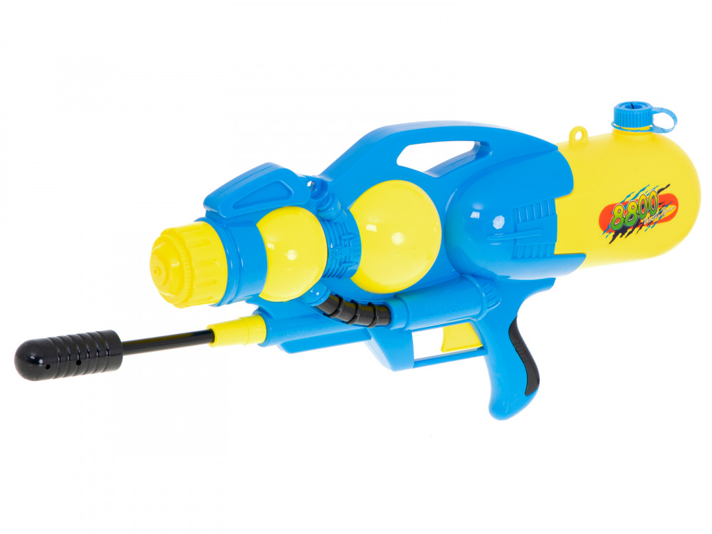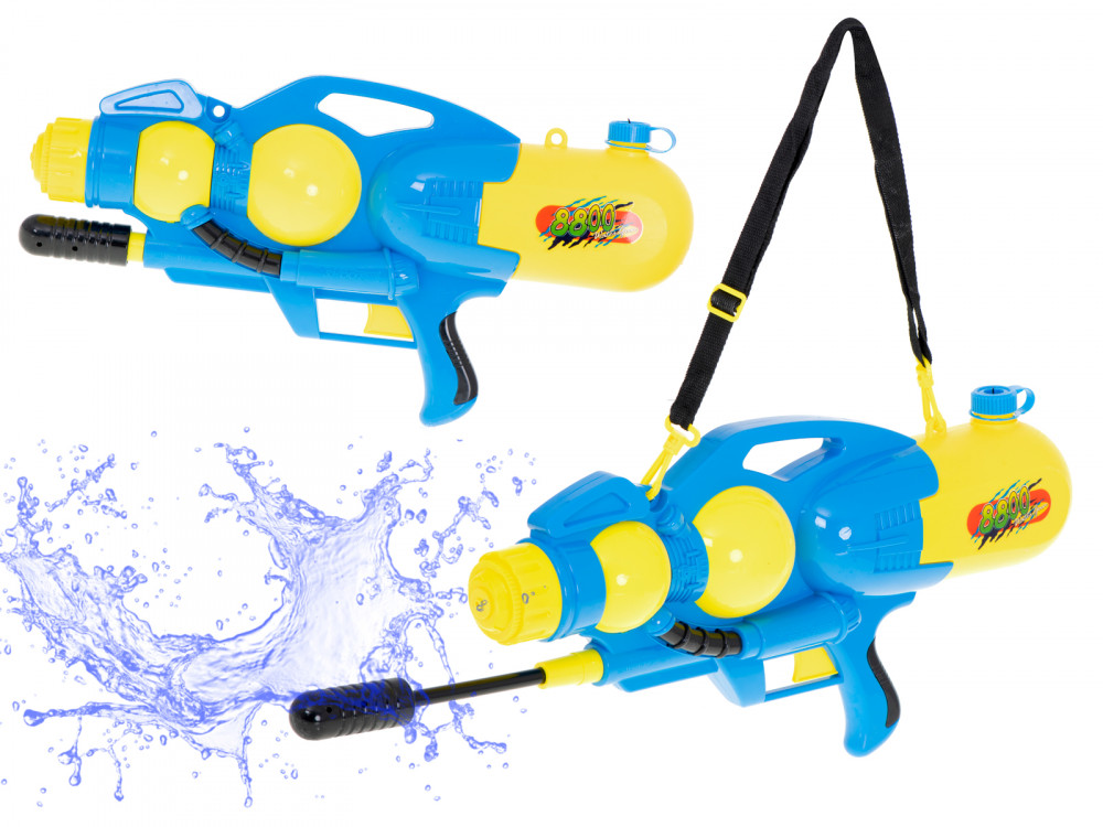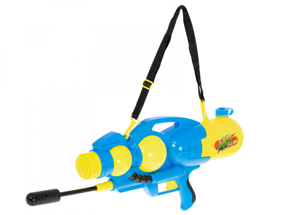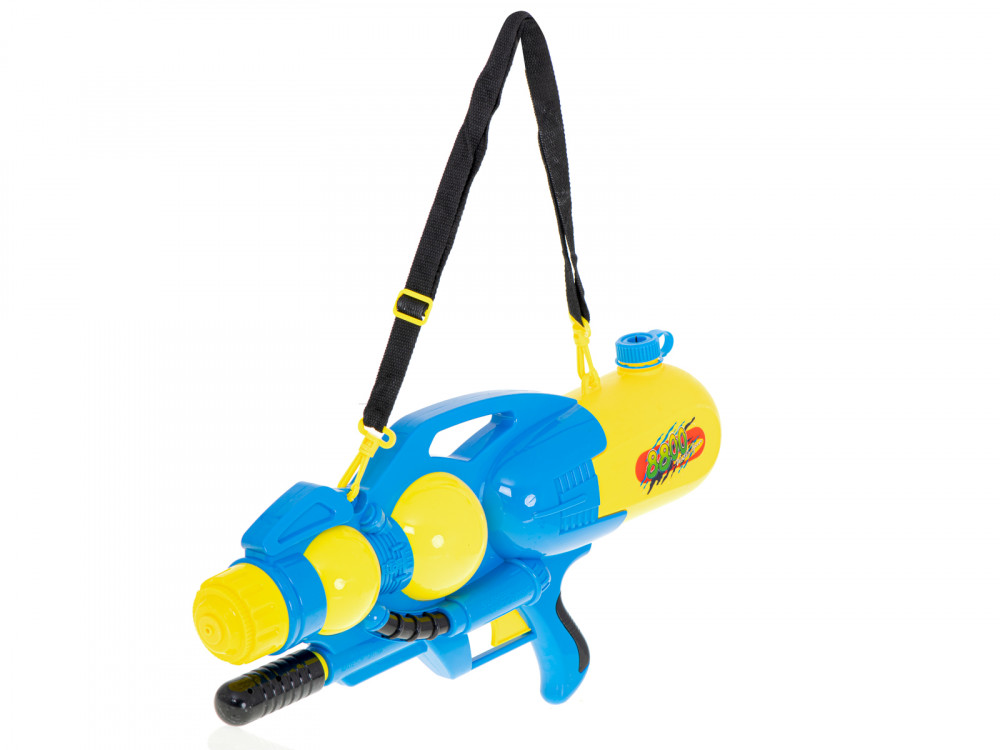 Szenzációs vízipisztoly. Tökéletes a fiatal vízipisztoly-szakértők számára. Fejleszti a kézügyességet és mozgásra ösztönzi a gyermeket. Vállpánttal van ellátva a könnyű szállítás érdekében. Szín: kék. Kapacitás: 24,000ml. A fegyver méretei: 60x32cm.
