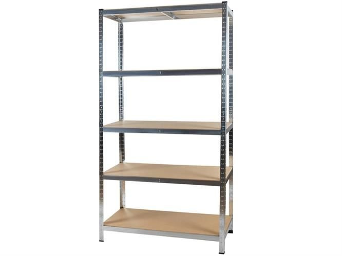 • MŰSZAKI ADATOK - polc méretei (magasság/szélesség/mélység): 180/90/40cm; polc méretei (szélesség/hossz): 89,3/39,3cm; max. teljes terhelés: 175 kg a teljes polcra; polcok száma: 5; anyagok: horganyzott acél 0,8mm, MDF lap 4mm; összeszerelés: csavarmentes (betolható keresztrudak); súly: ~15,5kg; keret vastagsága 4,5 cm