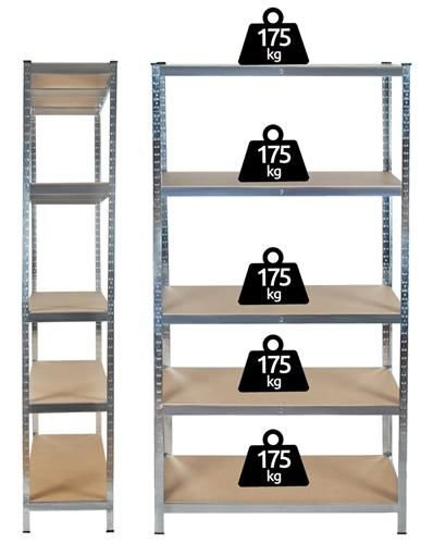 • 875 kg – egy polc maximális terhelhetősége 175 kg! Ami összesen 875 kg-ot tesz ki – könnyedén elhelyezhet benne mindenféle felszerelést vagy sok más terméket. A polc ideális olyan helyiségekbe, mint a pince, garázs, raktár vagy üzlet. Horganyzott acélból és vastag, 4 mm vastag MDF lapokból készül. Ezenkívül a polc keresztrúddal rendelkezik, amely növeli a stabilitást és a tartósságot, és biztosítja a hosszú távú használatot és a termékkel való teljes elégedettséget.