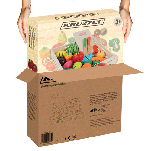 A színes zöldségekből és gyümölcsökből álló készlet dobozban nagyszerű kiegészítője a szórakozásnak azoknak a kis szakácsoknak, akik szeretnek otthon játszani, vásárolni vagy főzni. A gyerekek szívesen nézik a felnőtteket, és a készlet ezt lehetővé teszi számukra. Lehetővé teszi, hogy kiskorától kezdve szerepet játsszon, és oktatási funkciót töltsön be.