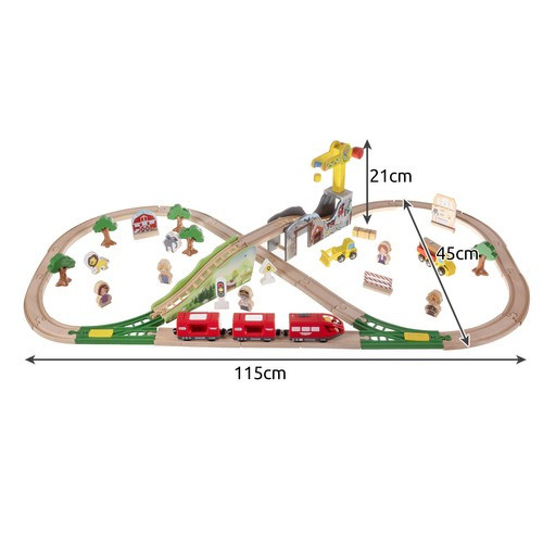 • LEÍRÁS – anyaga: fa; vonat tápegység: 1x AA (nem tartozék); vágányhossz: 3,2 m; platform méretei (híd): cm; méretei kibontva: 115 x 45 x 21 cm; súly: 1,832 kg; súlya csomagolással: 2,509 kg.