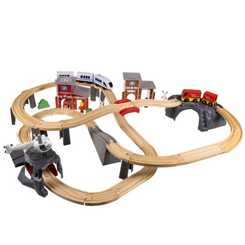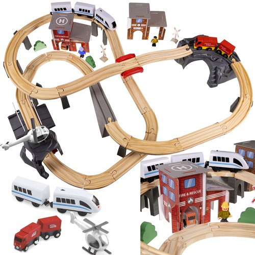 70 db-os fából készült vasútpálya szett gyerekeknek