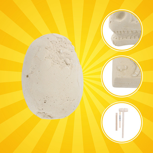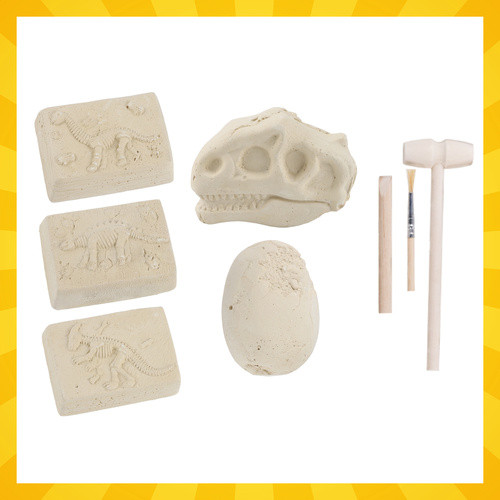 • 3 gipsz blokk, 1 dinoszaurusz tojás és 1 dinoszaurusz koponya rejtett csontvázakkal