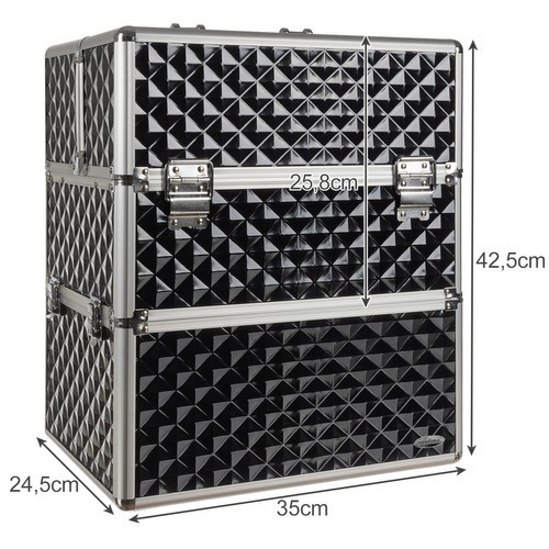 • NAGYON NAGY MÉRET - tökéletes kozmetika rendszerezésére. Ebben a kétrészes tokban mindig minden termék a helyén lesz. Nem csak kozmetikumokat tárolhat és szállíthat. Ide illeszthető UV/LED lámpa és marógép is . A kozmetikai táska kényelmes hordozó fogantyúval, polcokkal is rendelkezik a könnyű rendszerezés érdekében, és az egyik tálcát körömlakkok rendezővel látták el.