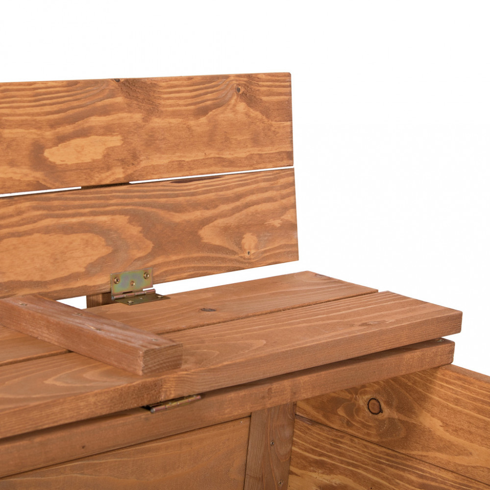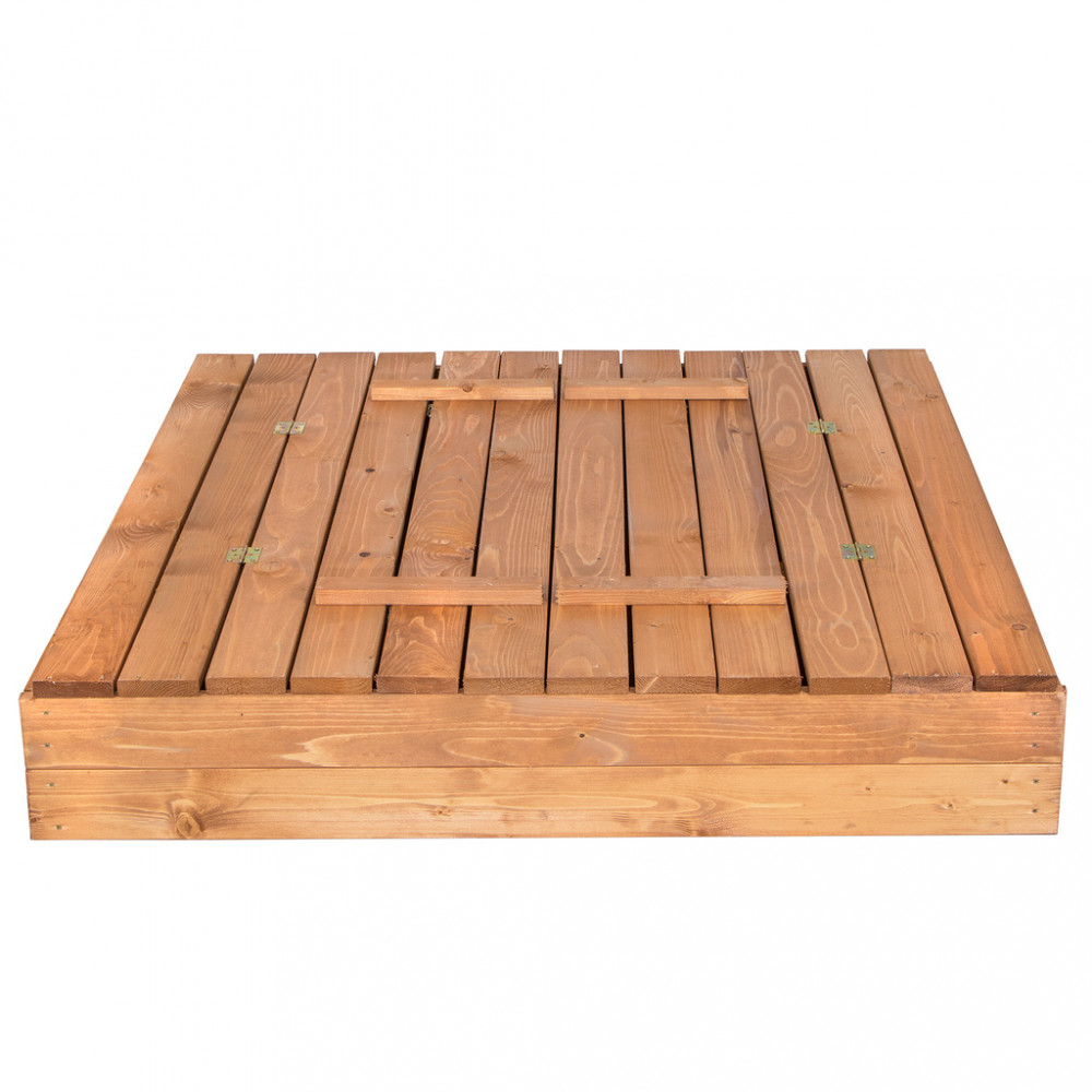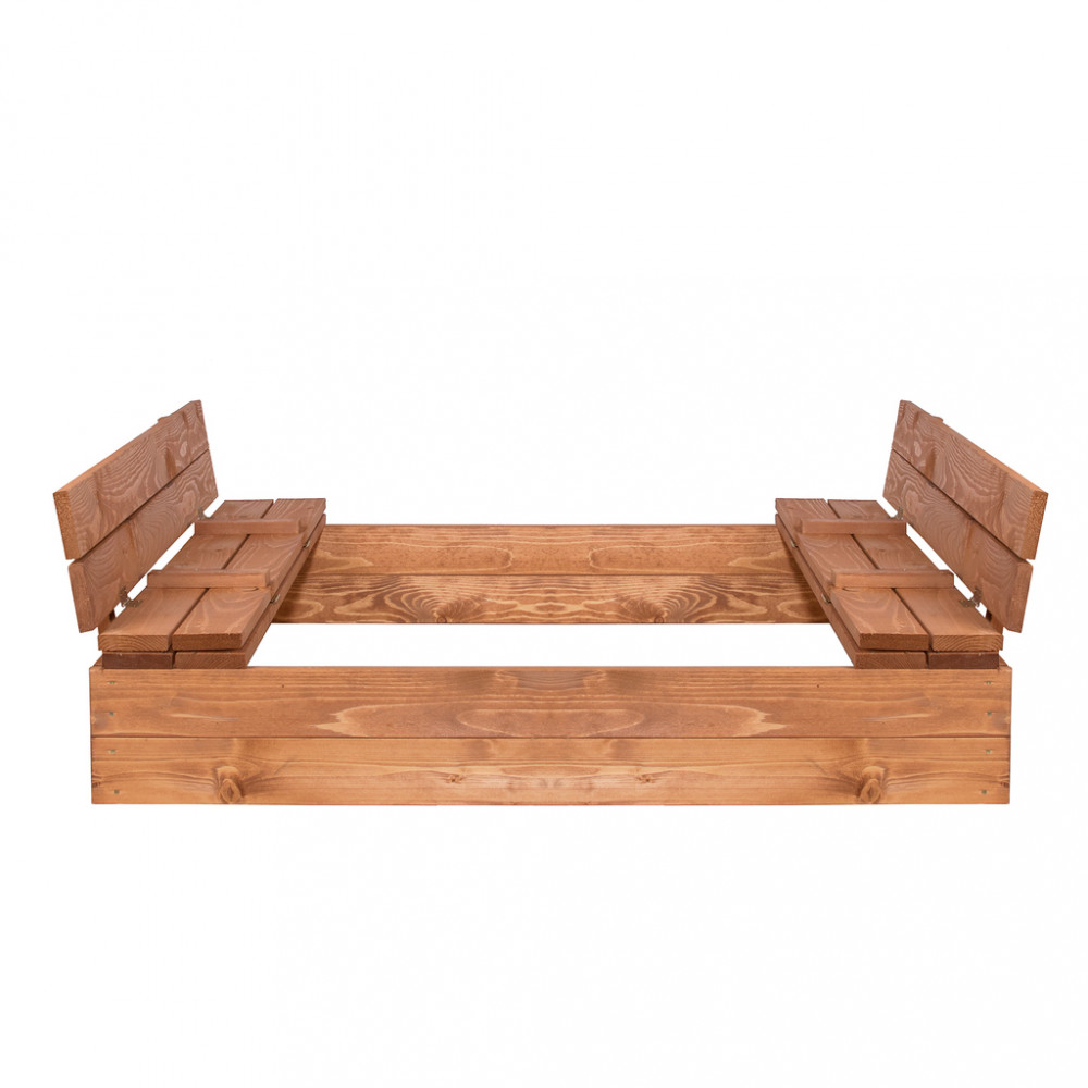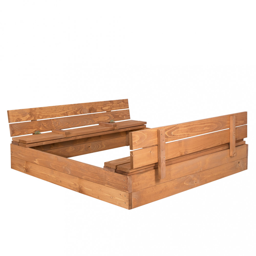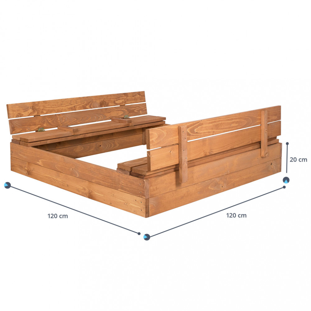 A fából készült homokozó minden kertben elengedhetetlen. A faszerkezet védelme érdekében impregnálással van bevonva. Az oldalsó padok burkolattá alakulnak át, így a homokot megvédi a szennyeződésektől. Méretek: 120x120cm.
