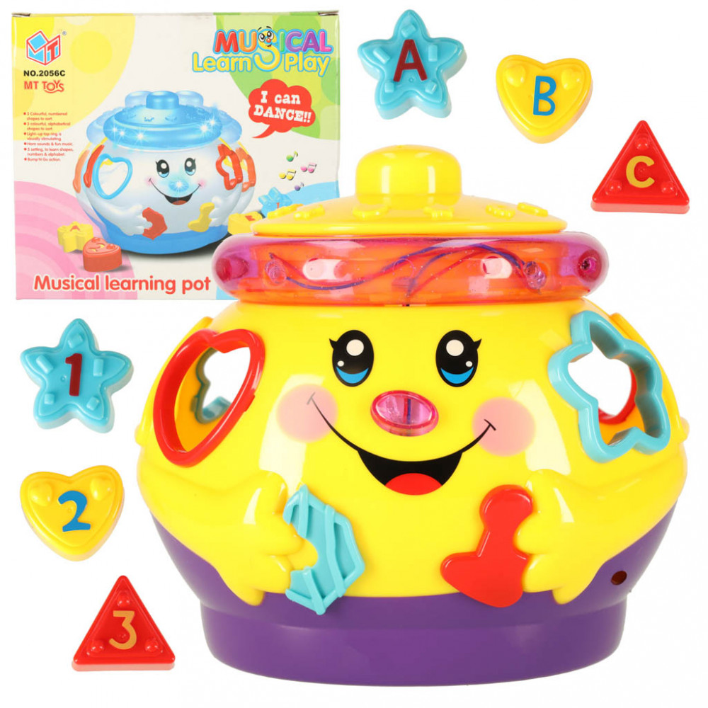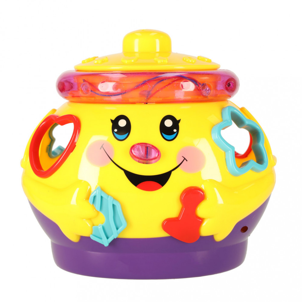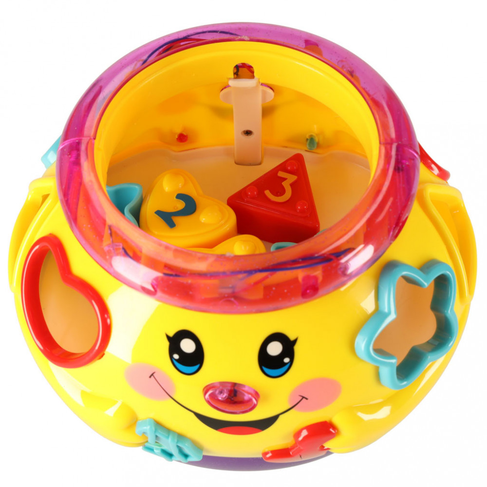 Bekapcsoláskor a cserép dallamokat játszik és körbejárja a szobát. A készlet 6 különböző formájú blokkot tartalmaz, amelyeket a gyermeknek a megfelelő lyukakba kell behelyeznie. Energiaellátás: 3 AA elem. Méretek: 12.5x10.5.5x14cm.