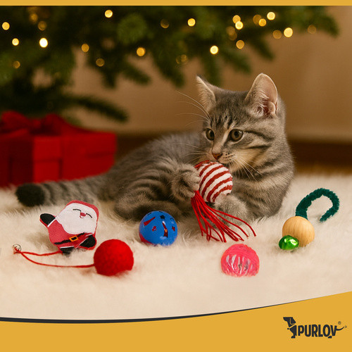 Purlov 26380 Karácsonyi Macskajáték Készlet, 6 Darabos, Vidám és Kihívásokkal Teli Játék