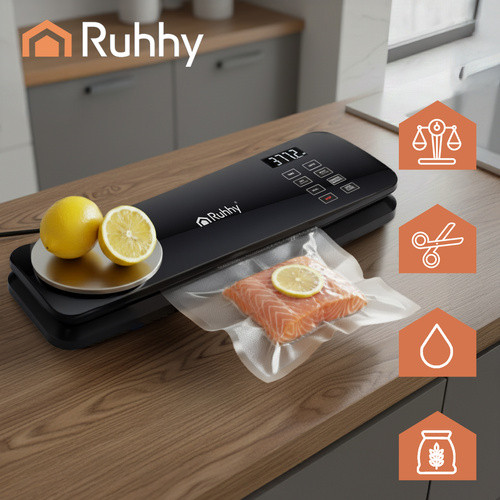 Ruhhy 2 az 1-ben Vákuumfóliázó Gép Súlymérővel és Kettős Pumpával - LCD Kijelzővel, 120W, 80 kPa - 9 l/min Kettős Pumpa, 2 kg Mérleg, 30 cm Záródás