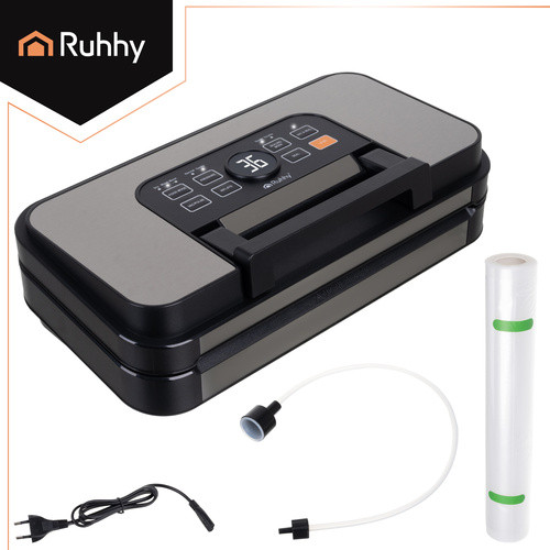 A Ruhhy a tökéletes megoldás, ha szeretné megőrizni ételei frissességét és rendben tartani konyháját. Az erős 125 W teljesítmény, a -95 kPa szívóerő és a dupla zárás révén gyorsan és hermetikusan csomagolhatja be élelmiszereit. Csak egy gombnyomás, és az ételei akár ötször tovább frissen maradnak íz- és aromavesztés nélkül.