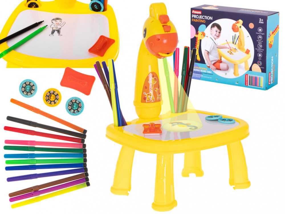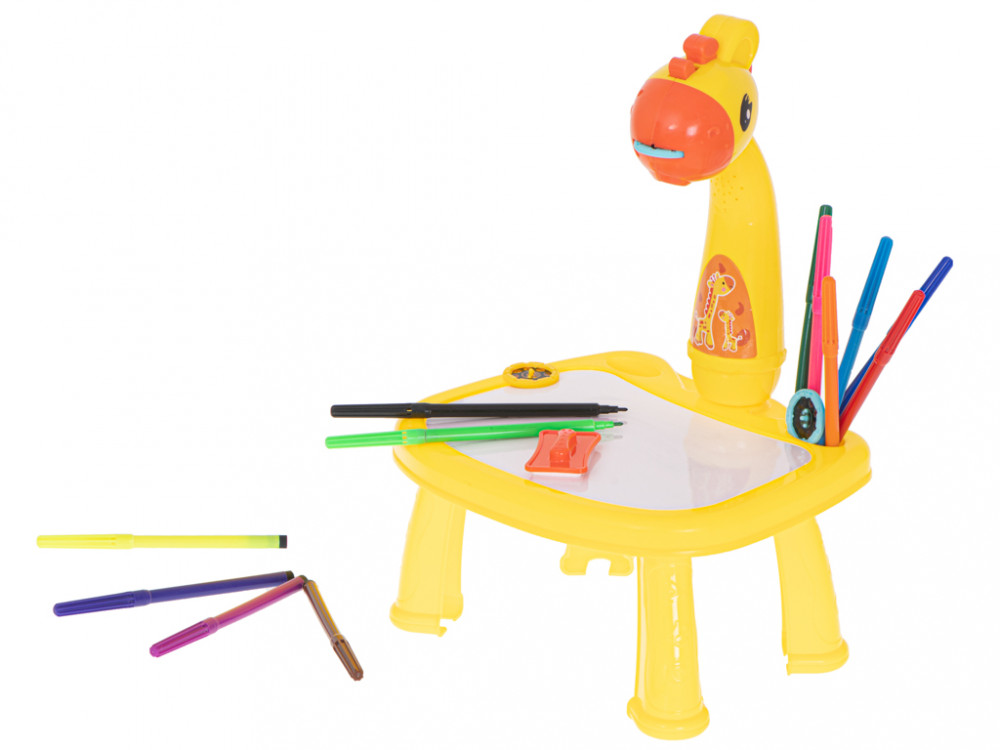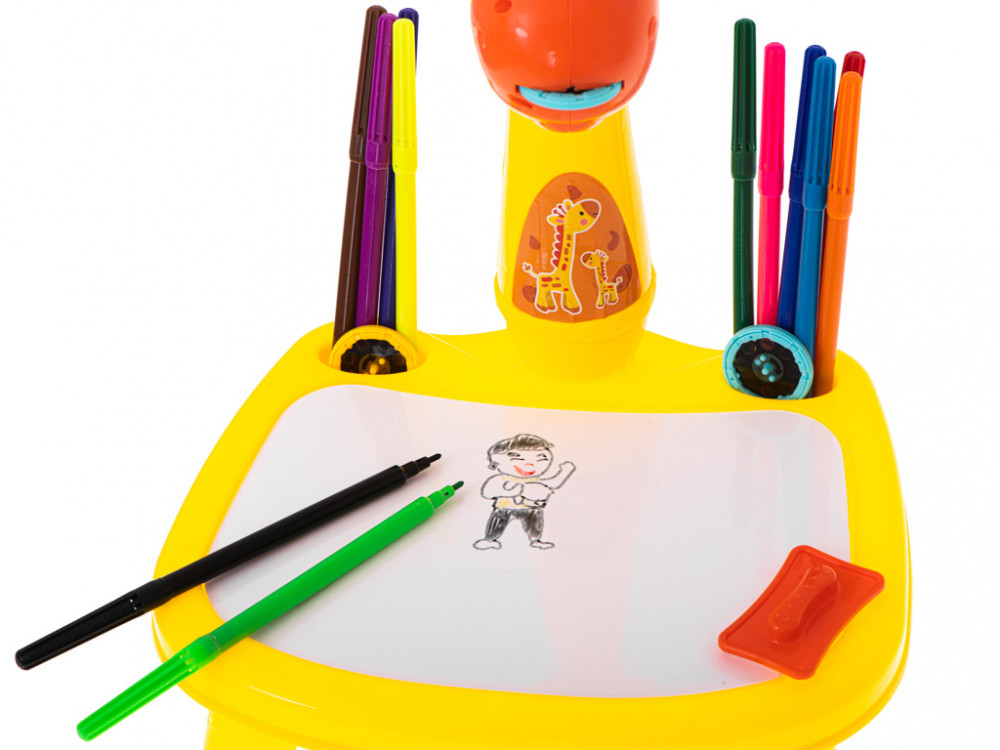 Egy imádnivaló zsiráf formájú projektor kétségtelenül festésre és rajzolásra ösztönzi őket! Az élénk, meleg színek vonzzák majd a kisgyermek figyelmét, aki sok időt fog eltölteni a festéssel!