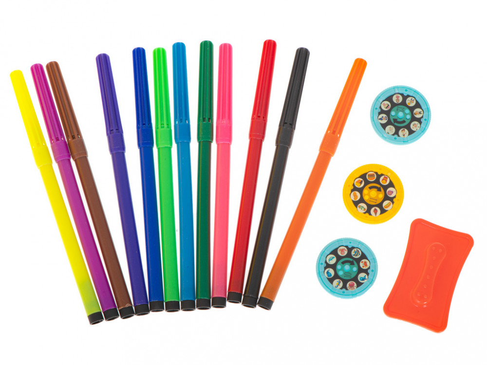 A készlet 12 színes filctollat tartalmaz, hogy a benne lévő összes mintát könnyedén elkészíthesd! A 3 mellékelt lemez 24 különböző festményt tartalmaz! Biztos, hogy nagyon szórakoztató lesz a gyermeke számára, ha mindet kitölti!