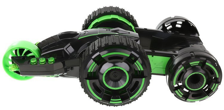 • 2 TÉTEL - az autó képes változtatni a helyzetét, 5 kerékkel rendelkezik, így a távirányító központi gombjainak segítségével változtathatja a vezetés módját. Ez a kialakítás teszi az autó szinte bármilyen körülményt képes kezelni. Gyakorlatilag nincs olyan akadály, amely kihívást jelentene az akrobata autónak. Az autó leküzdi a lépcsőket, ütközik a falakkal, és nem borul fel, hanem tovább halad.